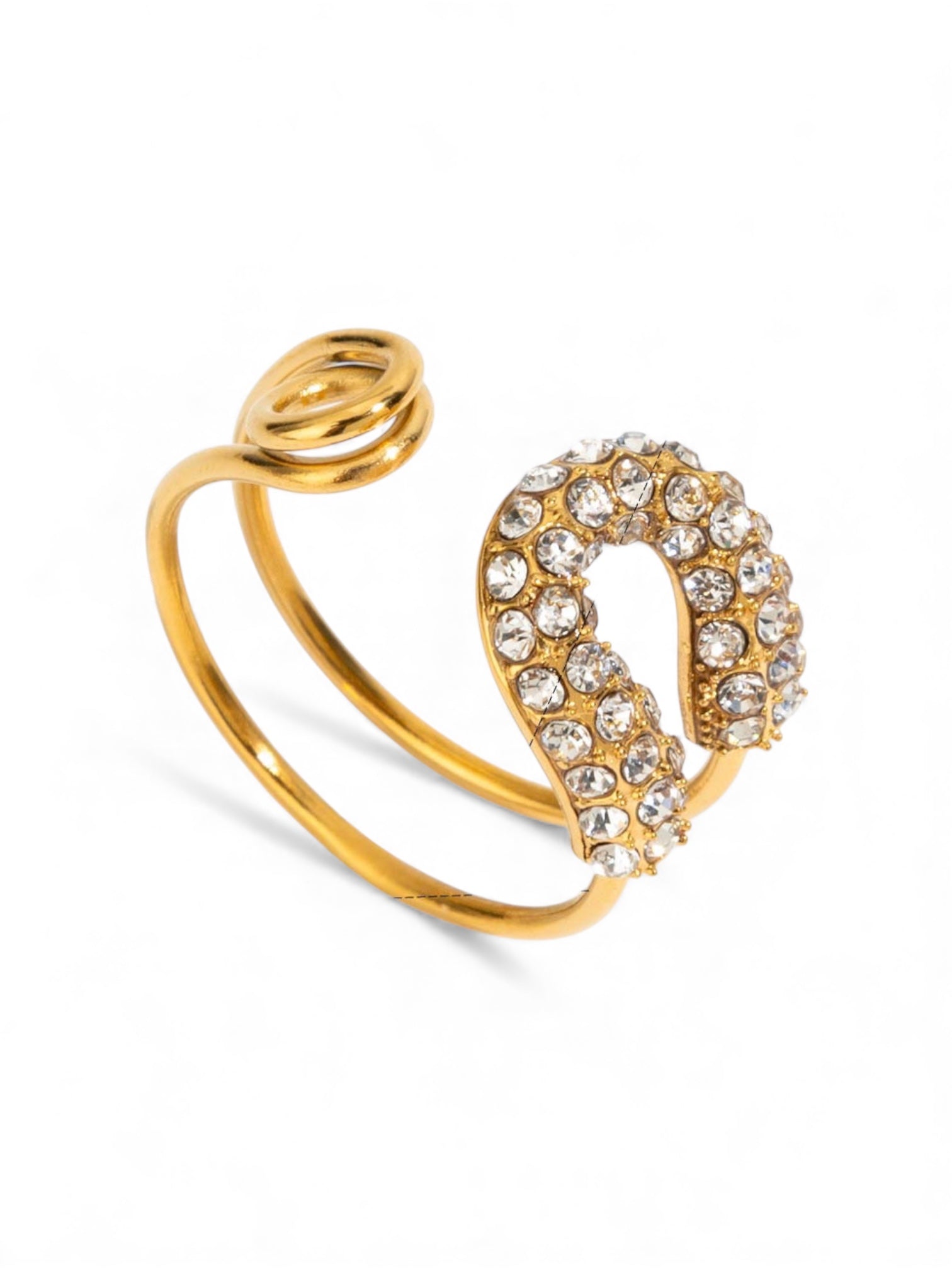 Anillo ajustable con incrustaciones hecho de acero inoxidable 304.