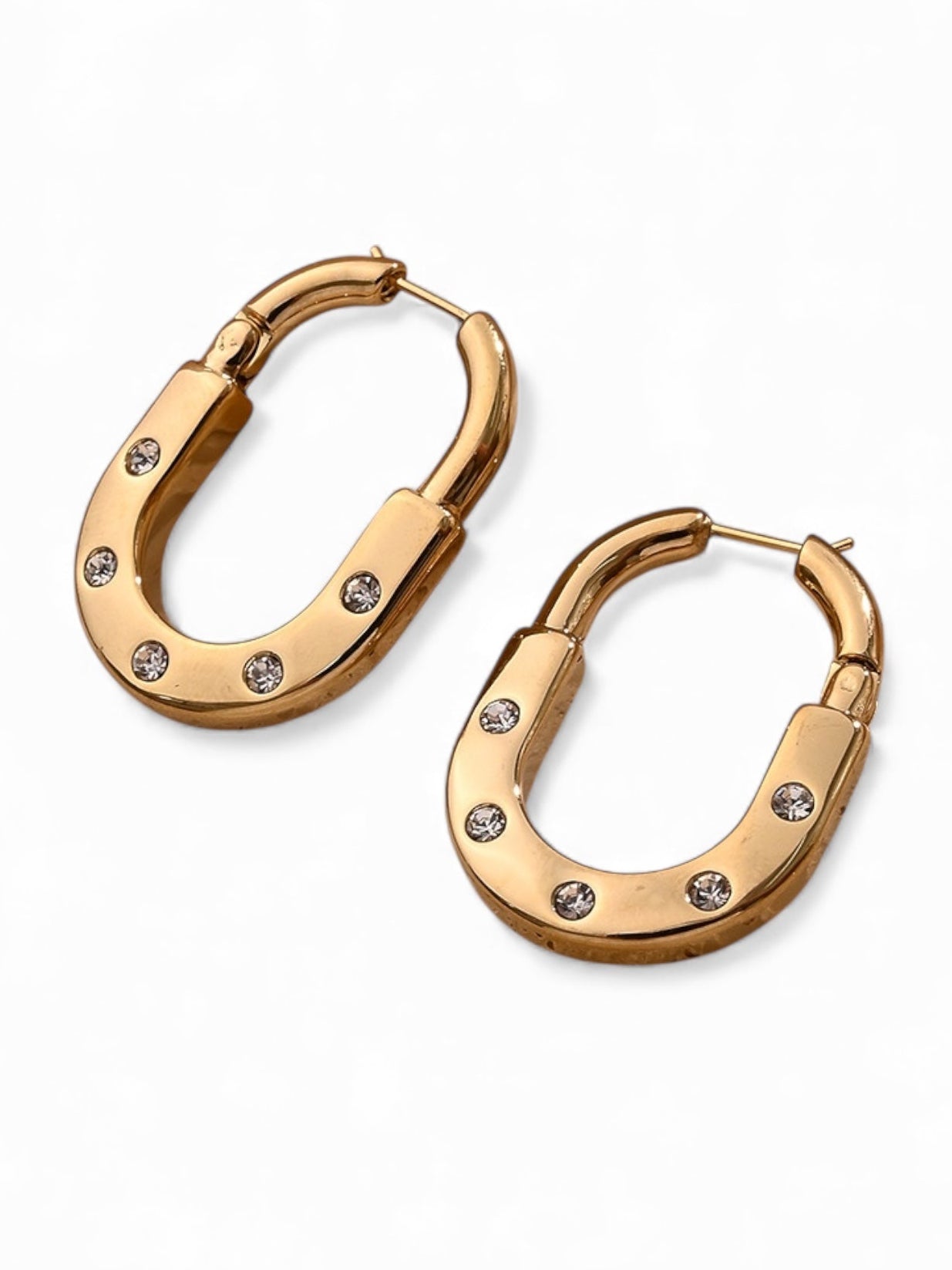 Aretes en forma de candado de acero inoxidable 304 chapados en oro de 18k con incrustaciones.